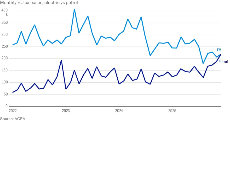 ACEA также отмечает, что общий объем продаж всех типов автомобилей, включая гибриды и дизельные, остается на слабом уровне и ниже предковидных значений. В 2025 году продажи увеличились на 1,8% и достигли 10,8 миллионов автомобилей, но это все еще не достаточно для восстановления прошлых темпов роста.